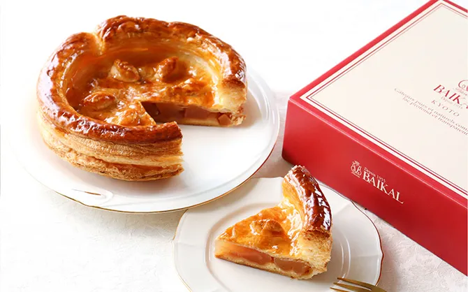 創業69年間愛され続けるバイカルの「アップルパイ」。バターをたっぷり折り込んだ香ばしい手折りのパイと、シロップの旨みをしみこませた青森の厳選りんごが相性抜群です。(要冷蔵商品)