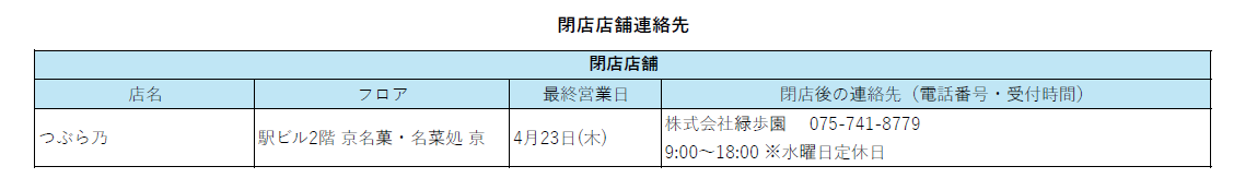 以下の店舗は閉店いたします。長らくのご愛顧ありがとうございました。